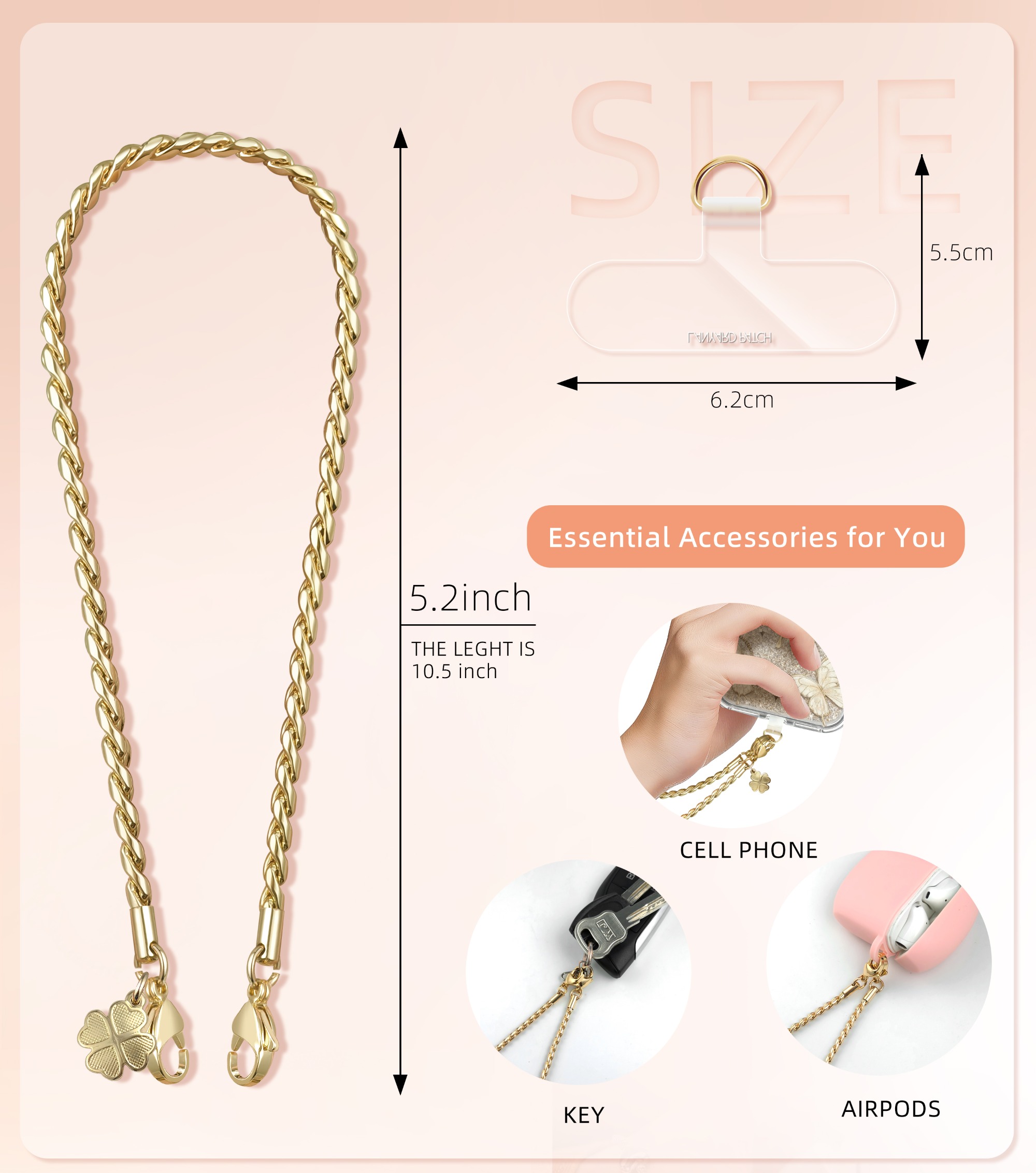 ROCONTRIP Metal Phone Lanyard with Gold Chain Detachable Phone Chain Wristlet with 2 Tether Tabs